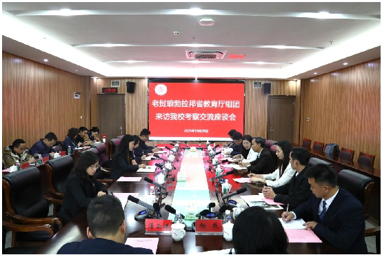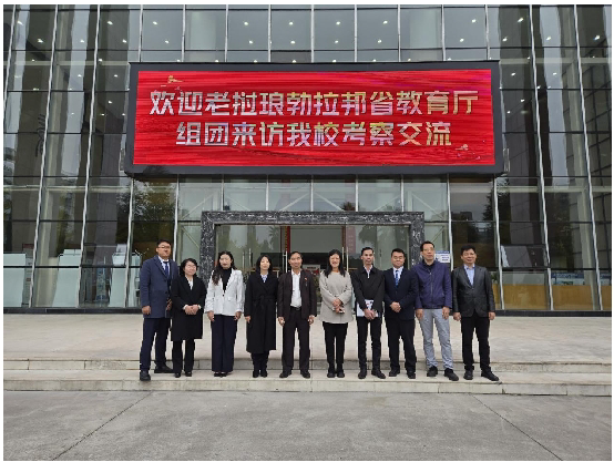 On October 29, a delegation of 10 members led by Mr. Senckhamonechanh (Ou Jiang), Deputy Director of the Education and Sports Department of Luang Prabang Province, Laos, visited the school for inspection and exchange. The aim was to promote in-depth cooperation between China and Laos in the field of vocational education, and to explore collaborative opportunities in areas such as talent cultivation, vocational training, and skills certification. Chen Liaoliao, Standing Committee Member of the University Party Committee and Vice President, accompanied the delegation.
